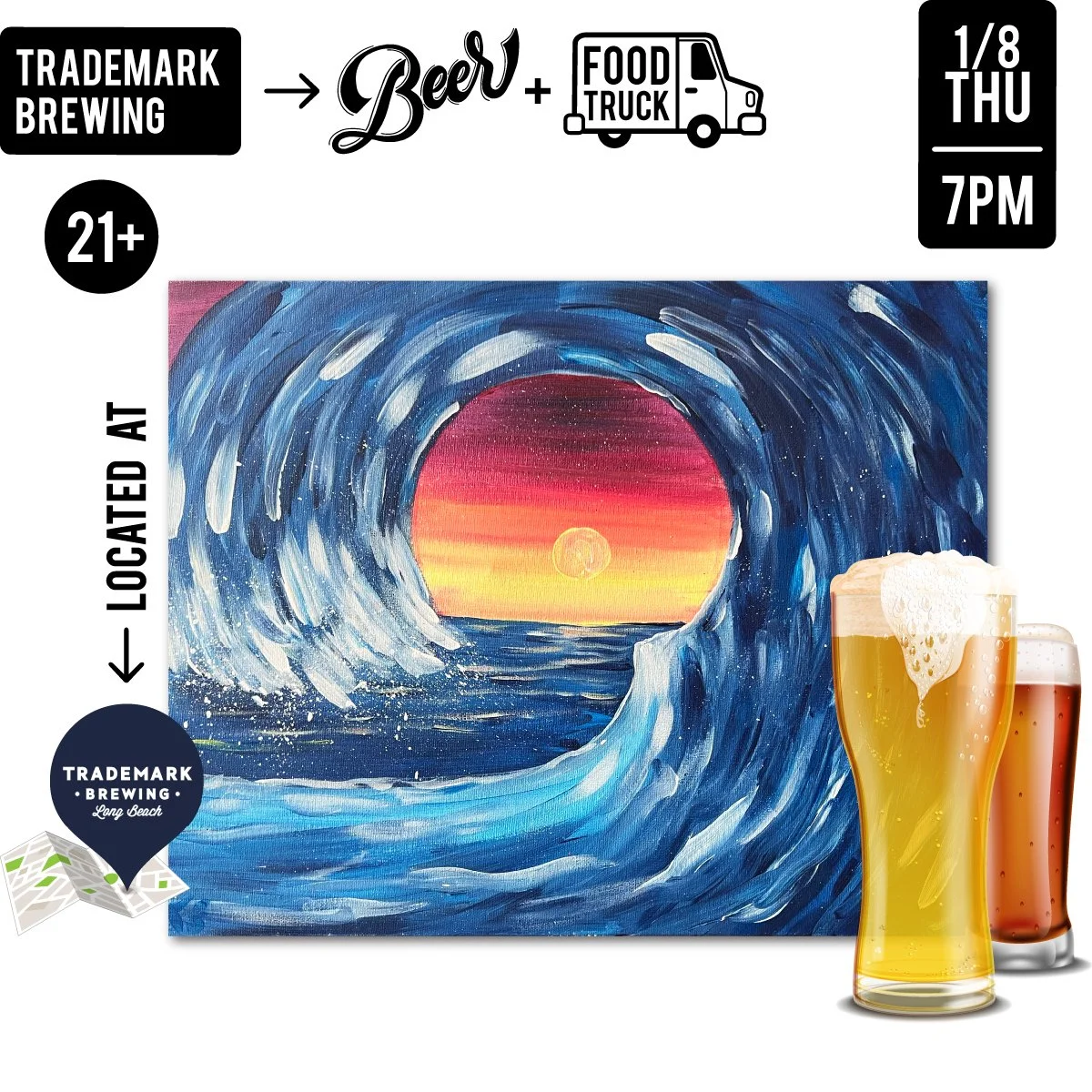 Learn how to paint “Barrel Wave” step by step! This event is located at Trademark Brewing, the first production craft brewery and taproom in Long Beach, CA! All materials included!