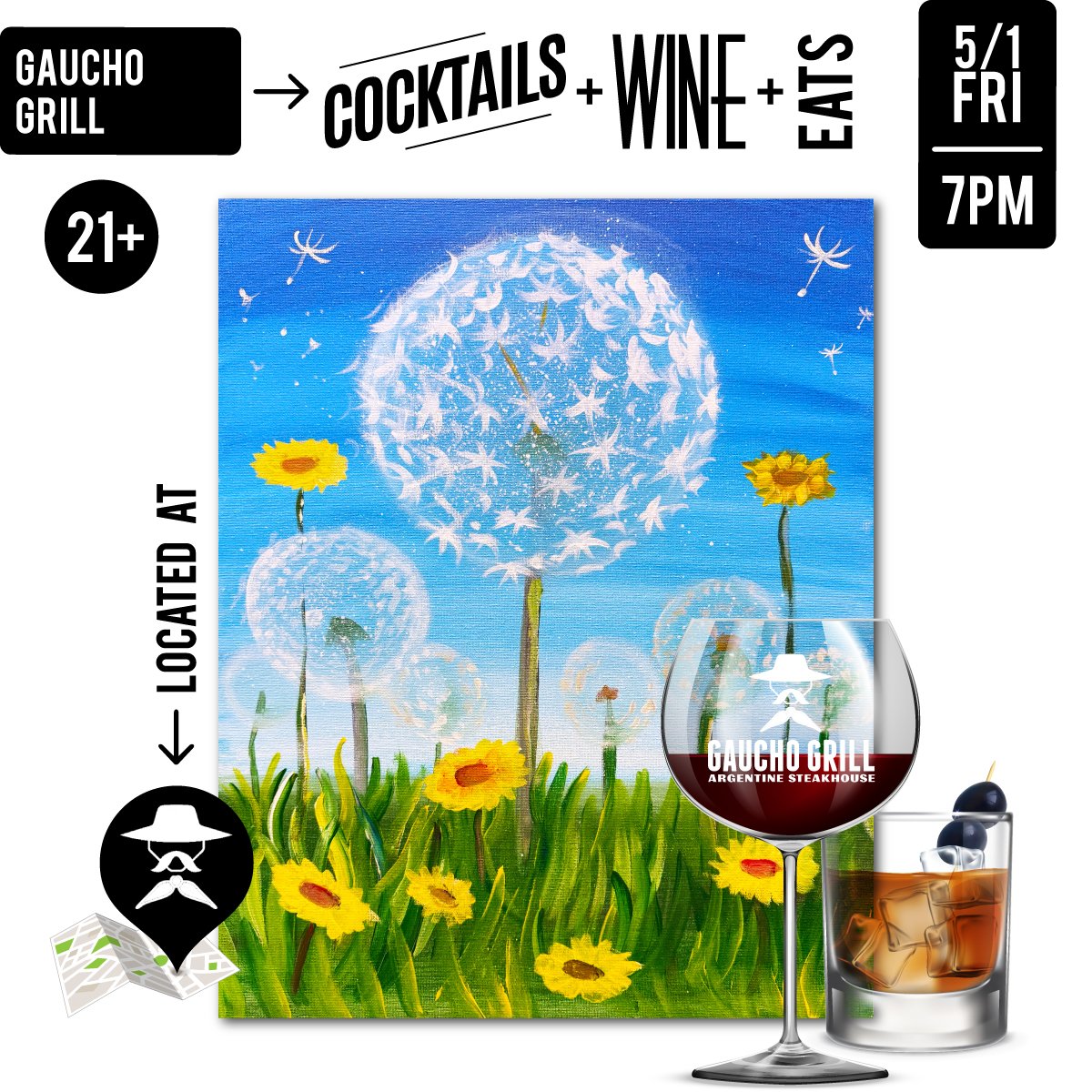 Learn how to paint “Spring Wishes” step by step! This event is located on the outdoor patio at Gaucho Grill Argentine Steakhouse in Buena Park! All materials included!